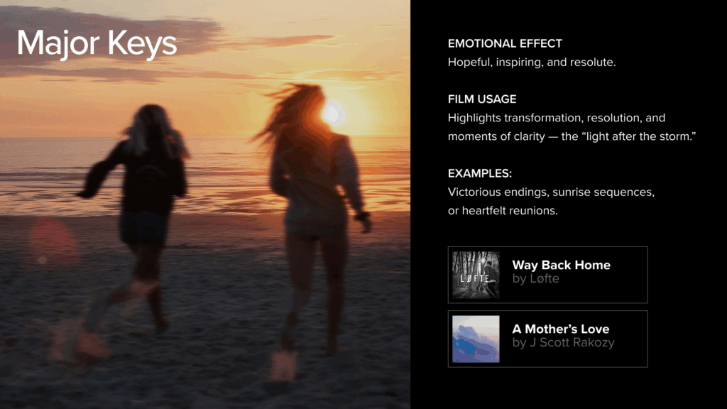 Create emotional alignment between music and story. When you’re scoring a narrative, the key you choose sets the scene.